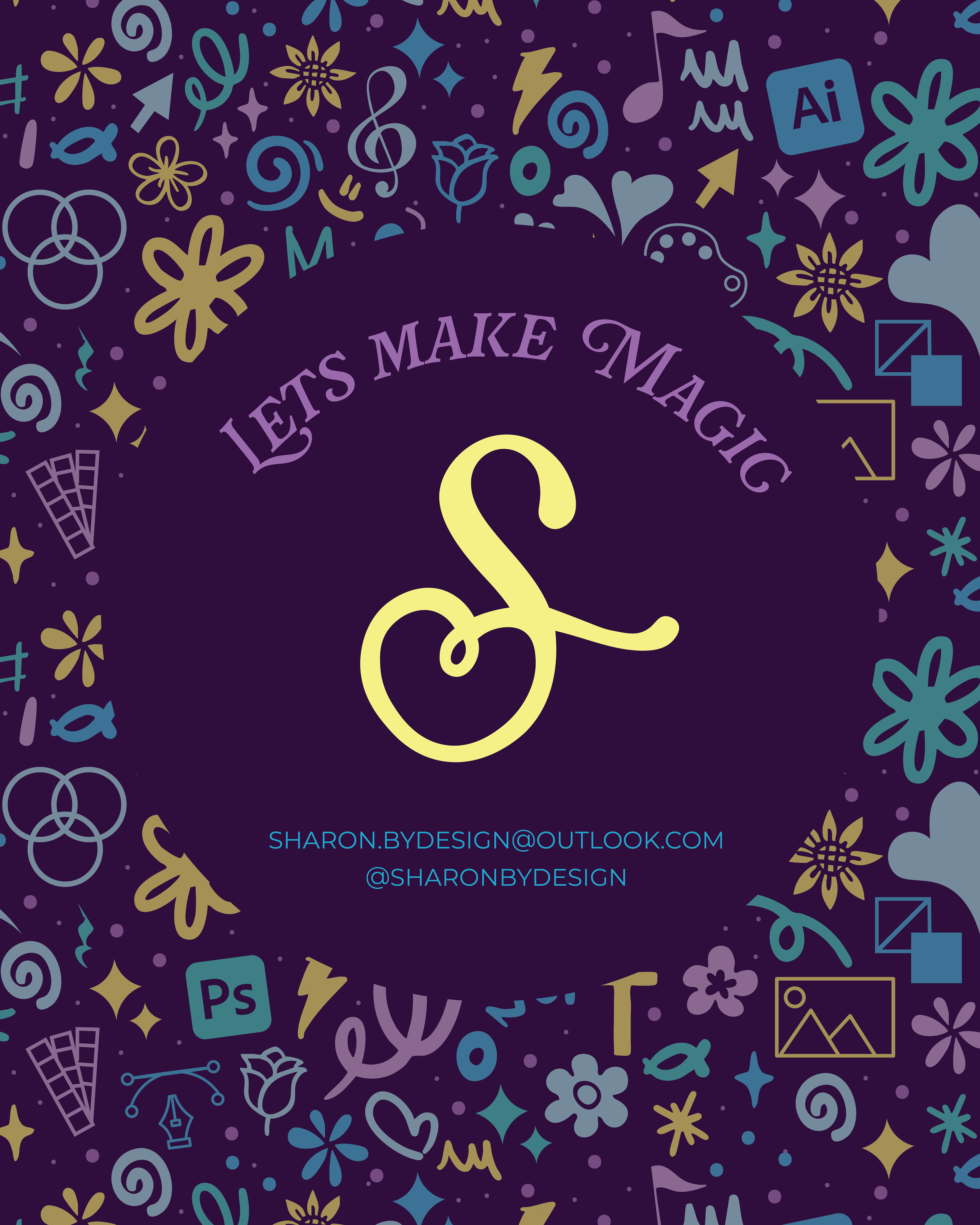 For this project, I developed the original brand identity for my personal graphic design business, Sharon By Design. The goal was to create a visual identity that reflects both my creative style and the values behind the brand while remaining flexible and professional for real world client work. The process began with defining the brand’s purpose, personality, and audience. Sharon By Design is rooted in the idea of meaningful, thoughtful design that feels approachable and expressive. The name was chosen as a tribute to my late grandmother, Sharon, who inspired my creativity, and it informed the brand’s emphasis on warmth, individuality, and intention. From there, I explored logo concepts that balanced playfulness with professionalism. I focused on creating a wordmark that felt memorable and inviting while remaining versatile across digital and print applications. Typography and form were refined to ensure clarity, scalability, and consistency. A supporting visual system was then developed, including a cohesive color palette and complementary type choices that allow the brand to feel creative without overwhelming the work itself. To apply the identity, I designed branded assets and mockups that demonstrate how Sharon By Design would appear in real world contexts, such as online platforms and client facing materials. These applications were created to showcase adaptability and to reinforce the brand as both personal and polished. This project represents my ability to translate personal inspiration into a strategic visual identity, demonstrating brand development skills that balance storytelling, design intention, and professional execution.